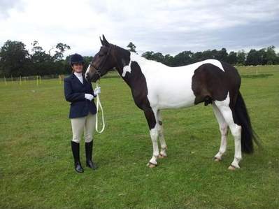 Description: Dark skewbald gelding just turned 5yrs hacks alone or in company ready to do more great event/hunt prospect good temperment and willing to learn ideal project teeth and vaccinations up to date.